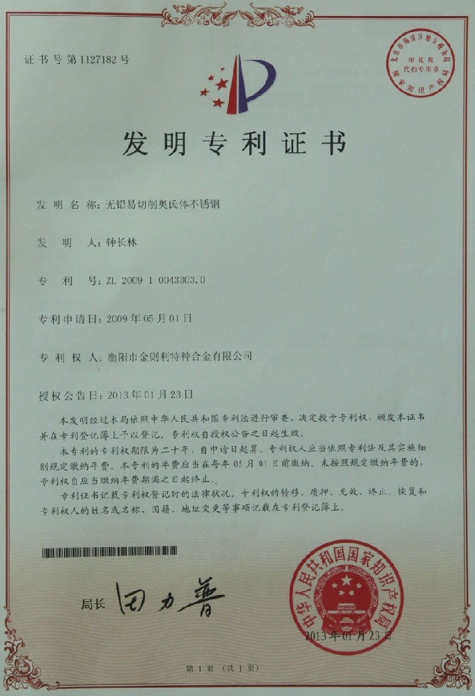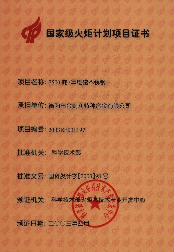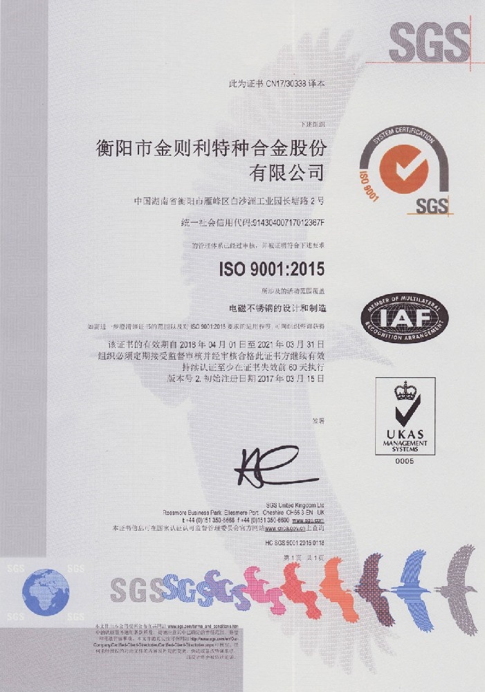 衡陽(yáng)市金則利特種合金股份有限公司成立于一九九九年十二月,注冊(cè)資本人民幣兩千兩百萬(wàn)元。注冊(cè)地址:衡陽(yáng)市雁峰區(qū)白沙洲工業(yè)園長(zhǎng)塘路2號(hào)。公司主營(yíng)耐蝕軟磁合金,為湖南省高新技術(shù)企業(yè)。公司自成立以來,即致力于耐蝕軟磁合金的研發(fā)。 研制出的JL-31(00Cr13si2Pb)、JL-31B(00Cr13si2)、JL-31BS(00Cr13Si2S)、JL-37B(0Cr17Si2)、JL-37(0Cr17···